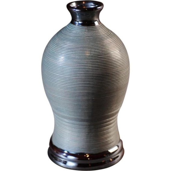 Wazon popielaty z grafitowymi wykończeniami pękaty 15,5x15,5x28,5 cm