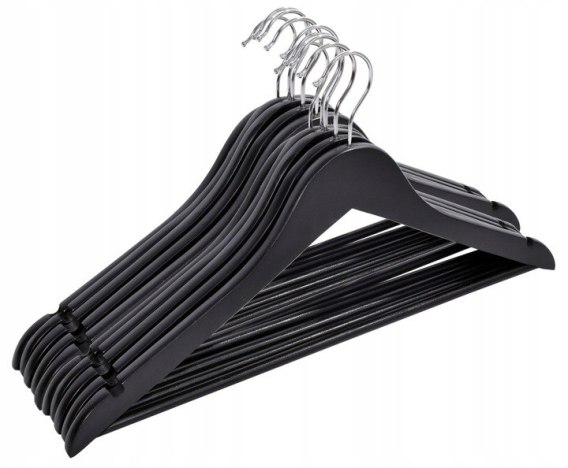 Wykonano je z naturalnego drewna, zabezpieczonego czarnym lakierem. Dzięki temu garderoba będzie się prezentować świetnie zarówno w szafie, jak i na stojakach w ekskluzywnym butiku.