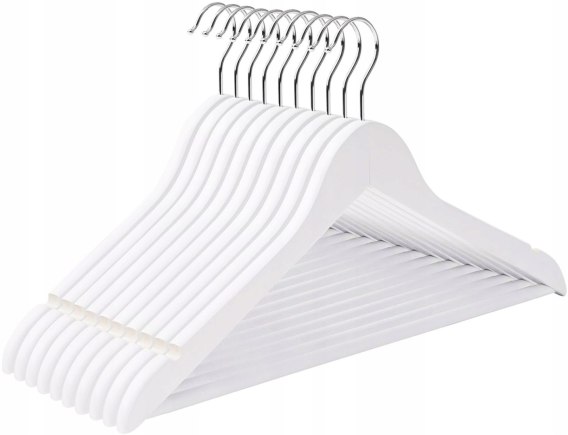 Wieszaki RONDO posiadają wszystko to, co solidny wieszak powinien mieć. Wybierając RONDO, wybierasz doskonałą jakość! Wykonano je z naturalnego drewna, zabezpieczonego ciemnym lakierem. Dzięki temu garderoba będzie się prezentować świetnie zarówno w szafie, jak i na stojakach w ekskluzywnym butiku. Posiadają one specjalne wcięcia do zawieszania odzieży na paskach. Z powodzeniem możemy zawiesić na nich cały zestaw ubrań - spodnie, kamizelkę, marynarkę. Jeśli dbasz o jakość i wygląd ubrań, koniecznie wybierz RONDO zamiast cienkich, metalowych wieszaków, które łatwo wygiąć i z których ubrania łatwo się ześlizgują, powodując bałagan w szafie.