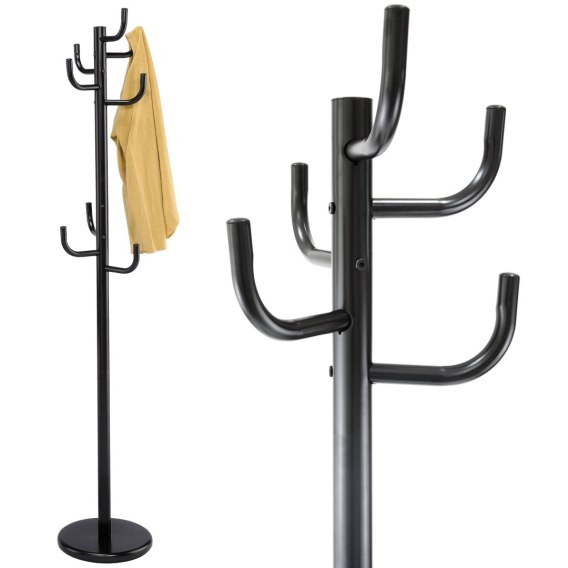 Wiktor to modny, loftowy wieszak na kurtki, ubrania i dodatki do garderoby, takie jak torebka czy kapelusz. Wykonano go z najwyższej jakości stali malowanej proszkowo. Wieszak posiada aż 8 ergonomicznych ramion, dzięki czemu można powiesić na nim dużą ilość garderoby. Zastosowanie solidnej podstawy oraz masywnych rurek, gwarantuje stabilność i bezpieczeństwo wieszaka. Klasyczny, czarny kolor o matowym wykończeniu sprawia, że model pasuje do każdego wnętrza. Idealnie wpasuje się w nowocześnie zaaranżowane pomieszczenia w stylu loftowym czy industrialnym. Wieszak Wiktor doskonale uzupełni wnętrze Twojego domu, biura czy poczekalni.