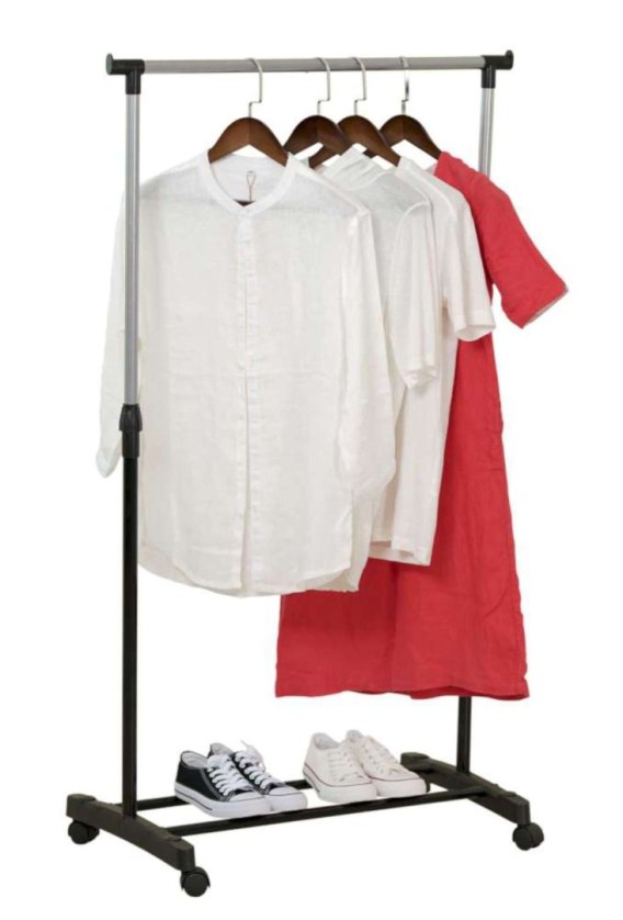 Wieszak sprawdzi się w każdym domu i w biurze, w którym brakuje miejsca do powieszenia odzieży. Nasz produkt został wyposażony w pojedynczy drążek, którego wysokość można łatwo regulować za pomocą nakrętek oraz kółka umożliwiające wygodne przemieszczanie. Dodatkowym atutem wieszaka jest wytrzymała i zaskakująco pojemna półka na buty, oraz nakładki na końce drążka uniemożliwiające zsunięcie się odzieży. Montaż wieszaka jest niezwykle prosty i nie wymaga użycia narzędzi. Wytrzymała konstrukcja z metalowych rurek w obejmach z tworzywa sztucznego, drążek z zabezpieczeniem przed zsunięciem się wieszaka.