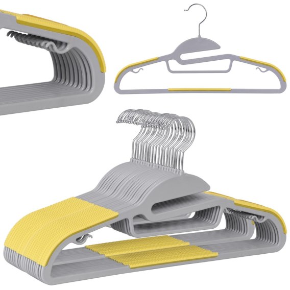 Wieszak ubraniowy FLEXI komplet 20 sztuk szaro-żółty