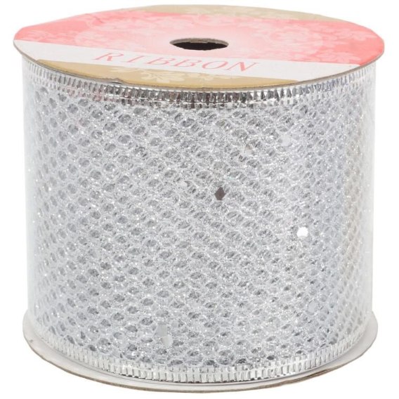 Wstążka dekoracyjna 10 m na szpuli srebrna
