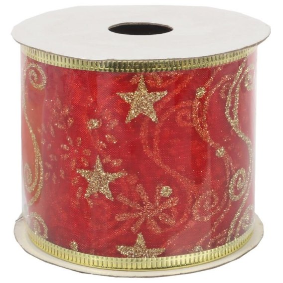 Wstążka dekoracyjna 6.5 cm na szpuli czerwona