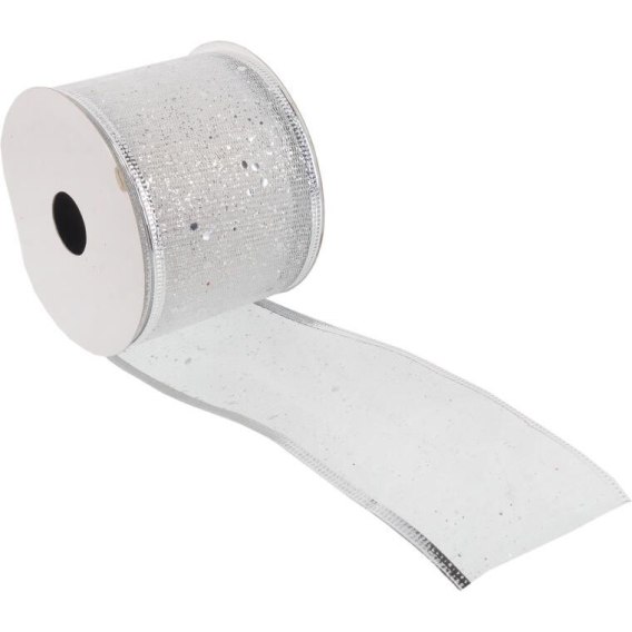 Wstążka dekoracyjna 7 cm na szpuli srebrna