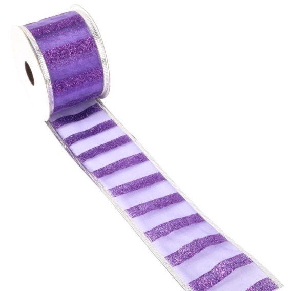 Wstążka dekoracyjna świąteczna fioletowo srebrna 5 cm x 2,7 m