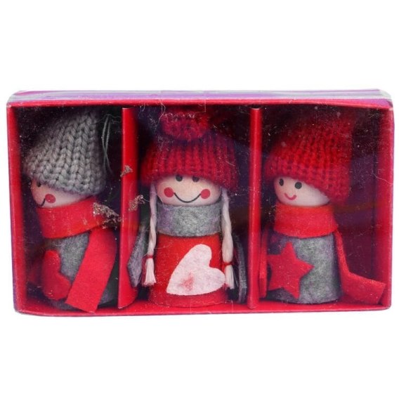 ZAWIESZKI ŚWIĄTECZNE - ZESTAW FIGUREK CHŁOPCÓW I DZIEWCZYNKI W KOLORZE CZERWONO-SZARYM
