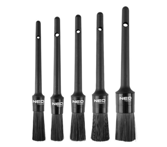 Pędzelki marki NEO TOOLS idealnie sprawdzają się przy czyszczeniu kratek nawiewu, szczelin, felg, komór silnika oraz innych elementów wymagających precyzyjnego czyszczenia. Dzięki dobraniu odpowiedniej wielkości pędzelka możliwe jest skuteczne usuwanie zabrudzeń bez ryzyka uszkodzenia delikatnych powierzchni. Zestaw przeznaczony jest zarówno dla pasjonatów detailingu, jak i profesjonalistów.