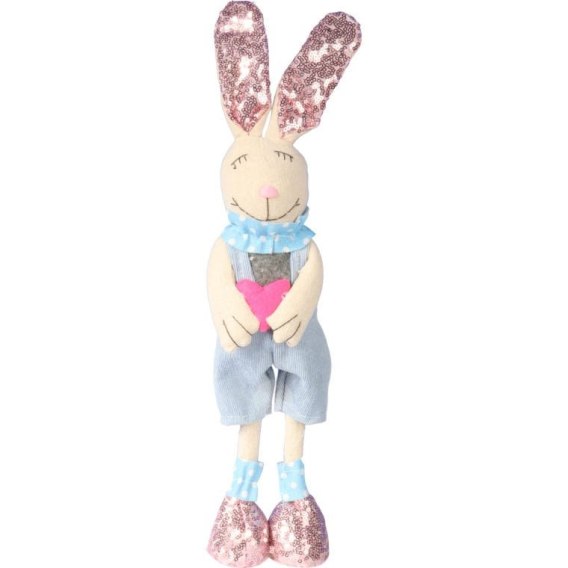 Zając Wielkanocny Stojący Niebieski z Różowym Serduszkiem 40cm
