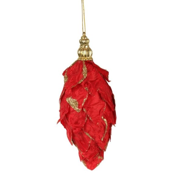 Zawieszka sopel czerwona z brokatem 14 cm