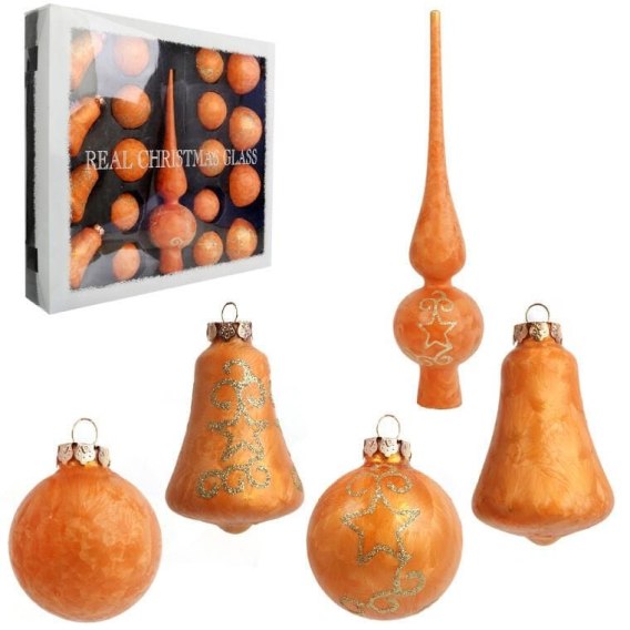 Zestaw 18 bombek szklanych z czubkiem kolor pomarańczowy