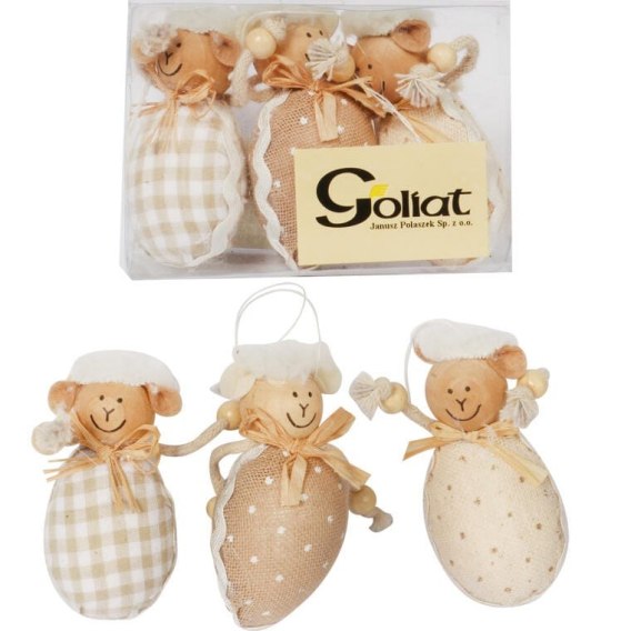 Zestaw 3 Brązowych Baranków Wielkanocnych do Zawieszenia, 7 cm