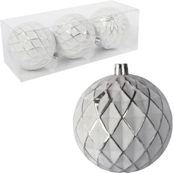 Zestaw 3 bombek plastikowych z dekorem 8 cm białe