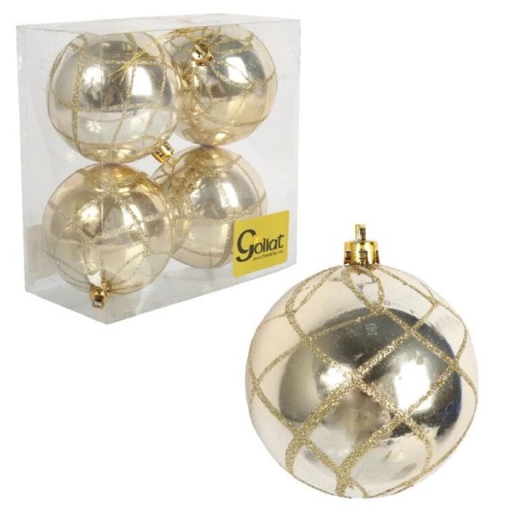 Zestaw 4 Plastikowych Bombek Bożonarodzeniowych 8cm - Złote z Brokatowym Dekorem