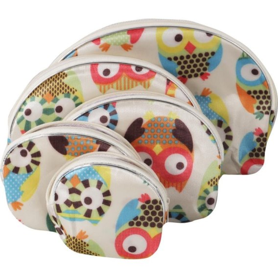 Zestaw 5 kosmetyczek w kolorze białym w kolorowe sowy