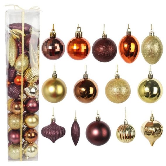 Zestaw 50 Luksusowych Bombek Plastikowych w Kolorze Brązowym różnej wielkości.