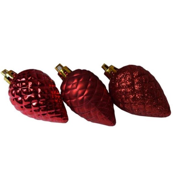 Zestaw 6 Czerwonych Bombek Choinkowych w Kształcie Szyszek - Mix Mat i Połysk
