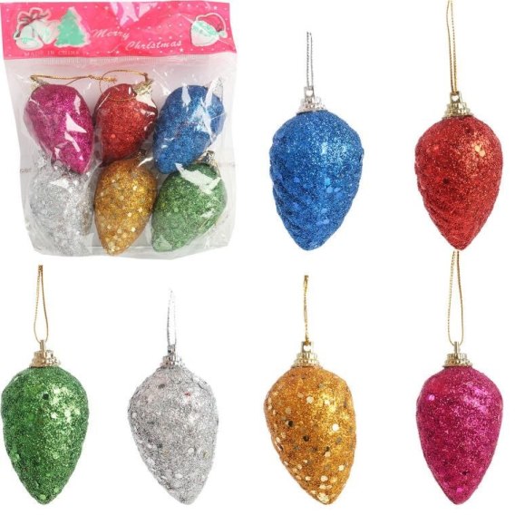 Zestaw 6 Kolorowych Plastikowych Bombek-Szyszek 7 cm do Dekoracji Świątecznych