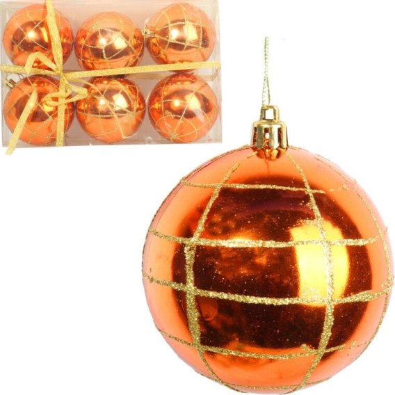 Bombki 6 sztuk plastikowe Bombki plastkowe w kolorze pomarańczowym z dekorem, to świetny i bardzo elegancki element do dekoracji bożonarodzeniowego drzewka, które przyciągnie wzrok i zachwyci klimatem. Roztoczy aurę wyjątkowych, rodzinnych świąt, a ta doskonale przeniknie do wszystkich domowników i gości. Bombki plastikowe o bardzo starannym wykonaniu. Zastosowanie takiego materiału jest alternatywą dla klasycznych, szklanych ozdób, które nie są tak trwałe i odporne na zniszczenie. Wysokość: 7 cm Opakowanie: 6 sztuki Kolor: pomaranczowy