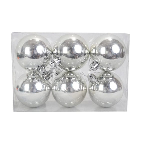 Zestaw 6 Srebrnych Bombek Plastikowych o Średnicy 6cm z Połyskiem