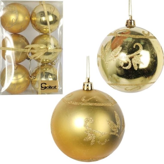 Zestaw 6 Złotych Bombek Plastikowych 8cm do Dekoracji Świątecznej