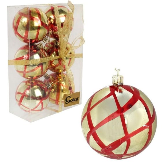 Zestaw 6 bombek plastikowych z malowanym dekorem 8 cm kolor złoty