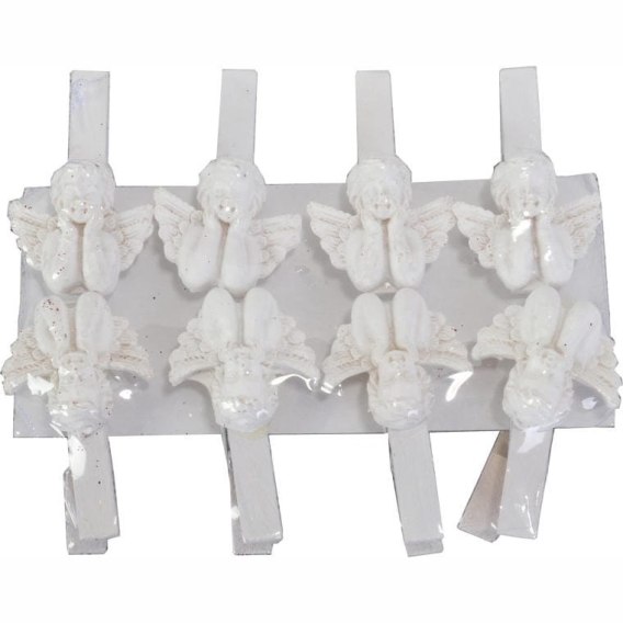 Zestaw 8 klamerek aniołki 4.5 cm białe