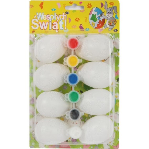 Zestaw Kreatywny Wesołe Pisanki - 8 białych jajek do malowania z farbami pastelowymi i pędzelkiem
