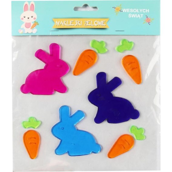 Zestaw Żelowych Naklejek na Okno - Zajączki i Marchewki (7 szt) o Wielkości 20x25cm