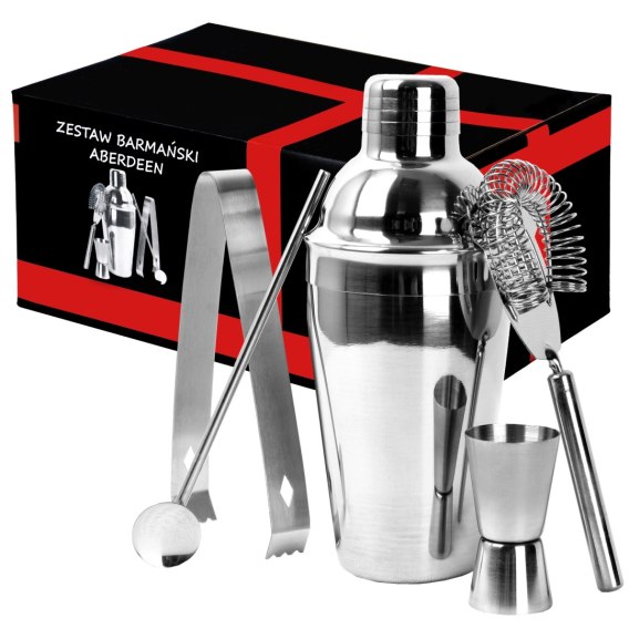 Zestaw barmański składa się z pięciu elementów, wykonanych ze stali nierdzewnej. Pozwala to zachować autentyczny smak uzytych do drinka składników.