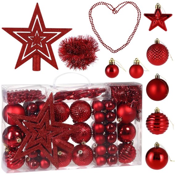 Zestaw bombek choinkowych ESTRELLA CZERWONY 66 sztuk