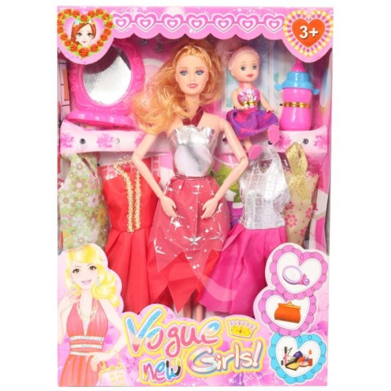 Zestaw do zabawy z lalką i jej maluszkem z akcesoriami, czerwony