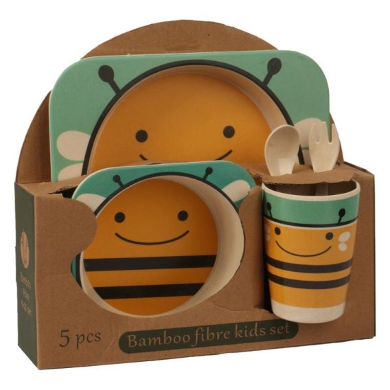 Zestaw niebieskich naczyń dla dzieci z pszczółką
