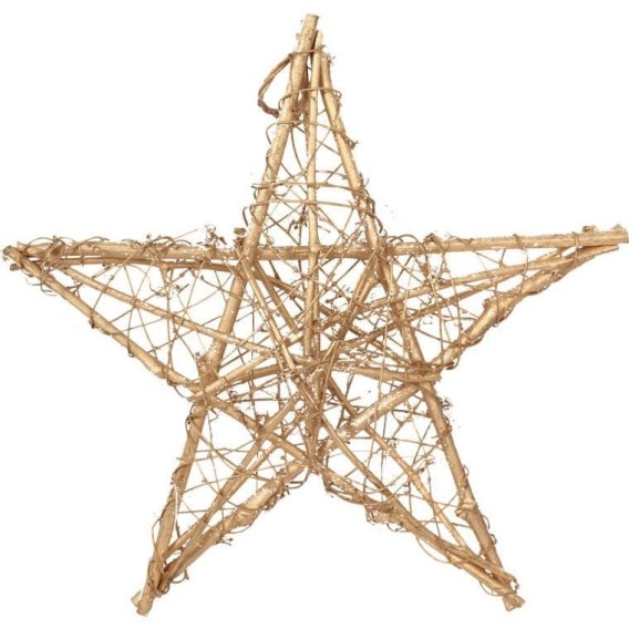 Złota Dwustronna Gwiazda z Rattanu - Zawieszka Świąteczna 40 cm