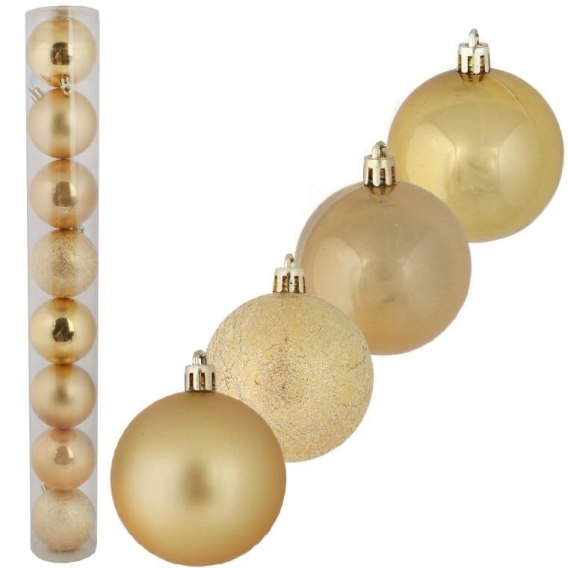 Złote, Plastikowe Bombki na Choinkę, 8 Szczegółowo Wykonanych Sztuk, 6 CM.